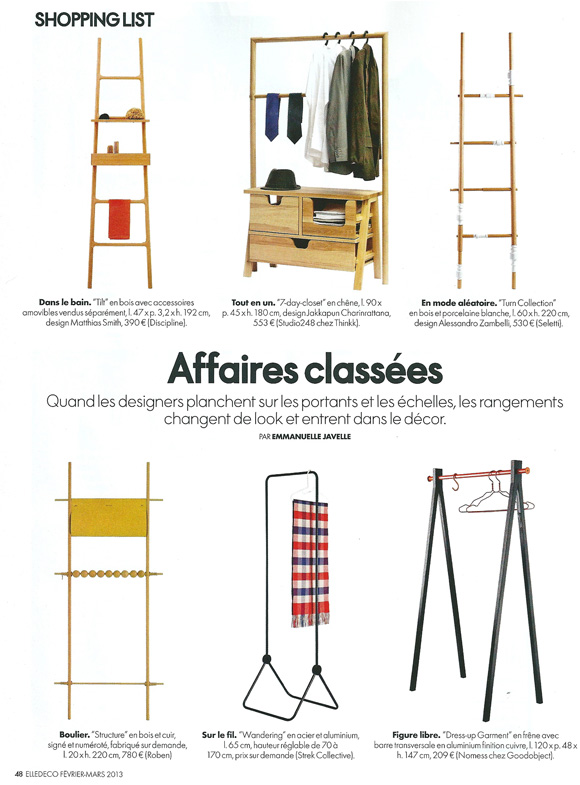 Our ‘Structure’ is featured in Elle Décoration France February – March 2013 ‘Affaire classées’ by Emmanuelle Javelle